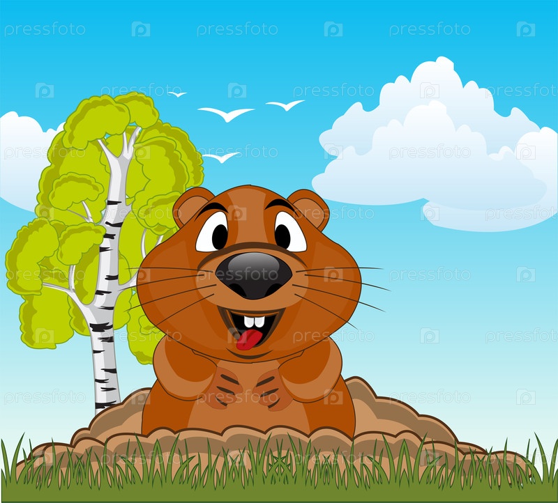 Векторная иллюстрация дикой природы вудчука на природе рядом с норы