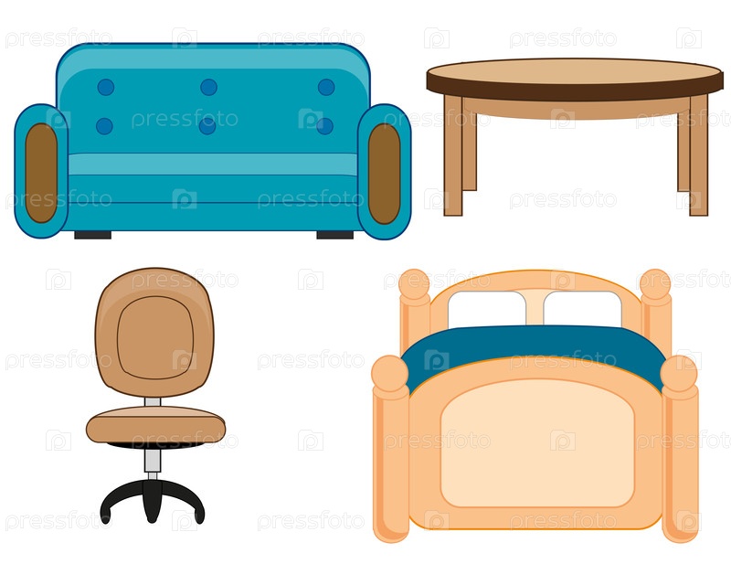 Векторная иллюстрация с мебелью, способной разместить стул и кровать