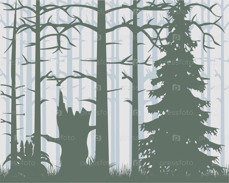 Толстая древесина ранним утром векторная иллюстрация