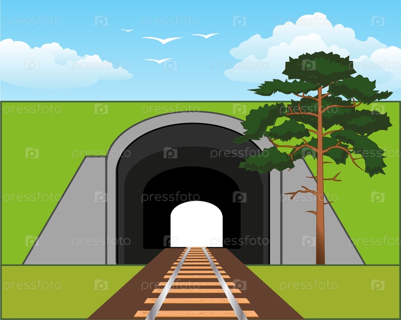 Векторная иллюстрация рельса, направляющего метро в горах