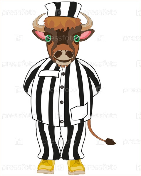 Комическая иллюстрация животных-быков в виде заключенного