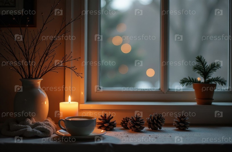 Искусственный интеллект создает новогоднюю ночь на столе, зиму и рождественские елки за окном