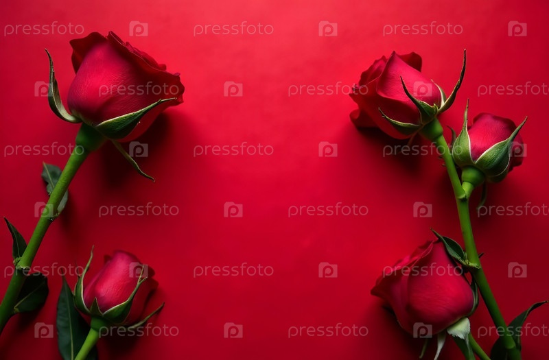 AI Generative Postcard с копировальным пространством для текста на красном фоне с цветами 8 марта