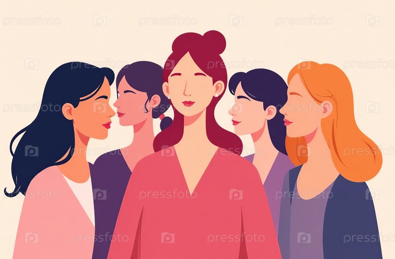 Генеративная иллюстрация различных феминистских женщин в Международный женский день