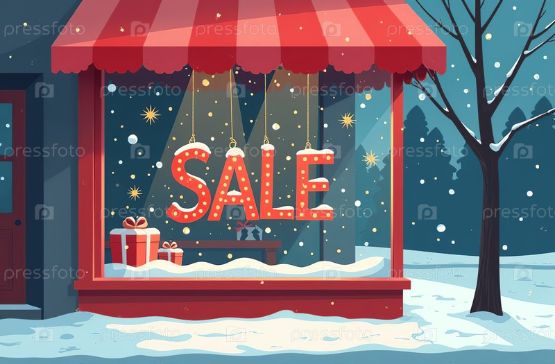 Рождественский плакат в витрине магазина, новогодний подарочный сертификат. искусственно создан