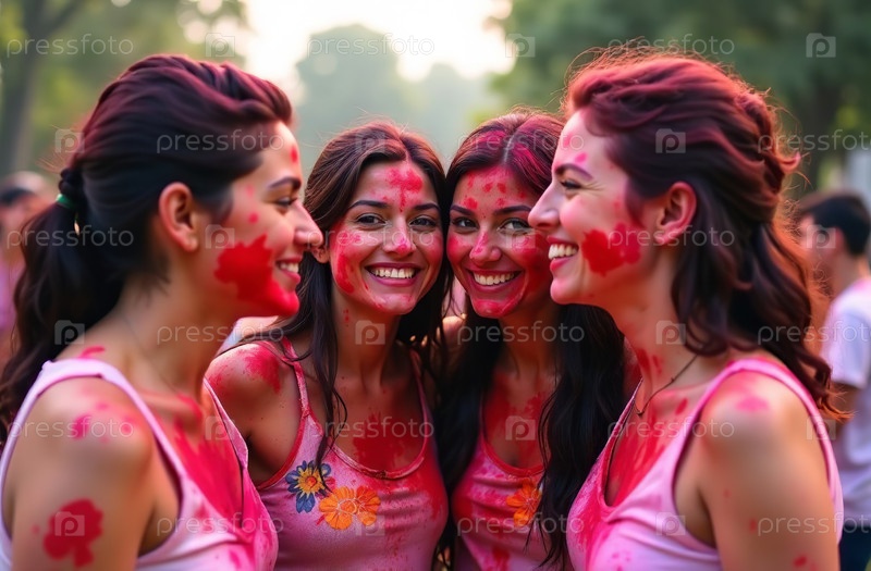Женщина в брызгах красочного Холи рисует индийский весенний фестиваль