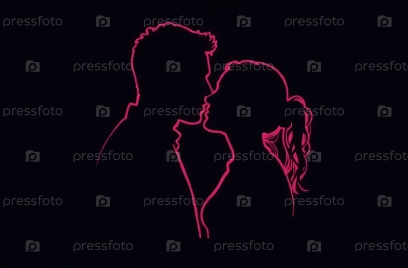 Розовый силуэт мужчины и женщины на черном фоне