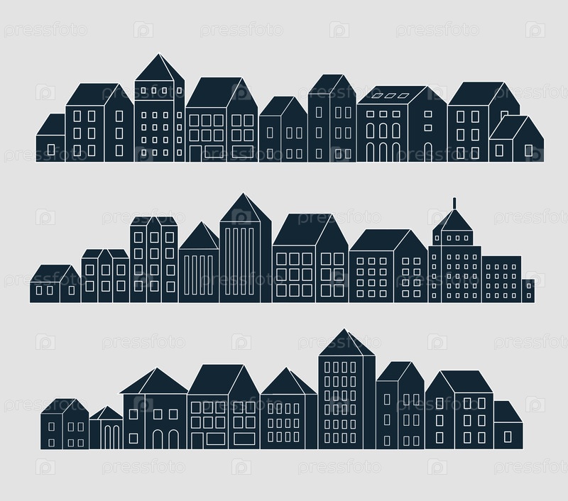 Набор линейных ландшафтных зданий, небоскребов и башен - контуры городских символов