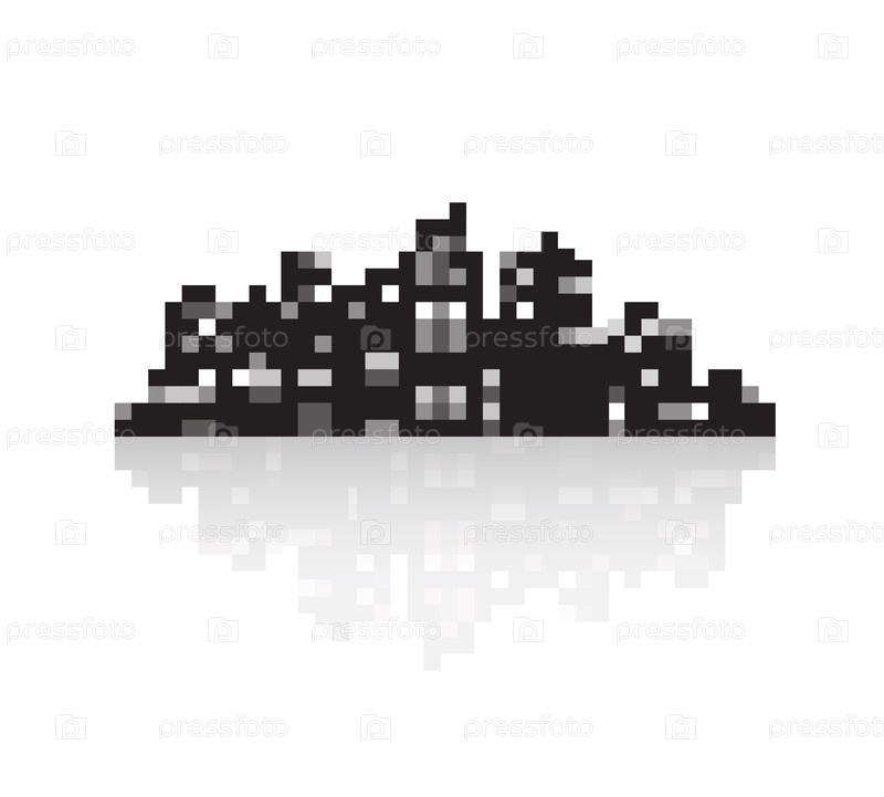 Силуэт современного города в стиле пиксельного искусства