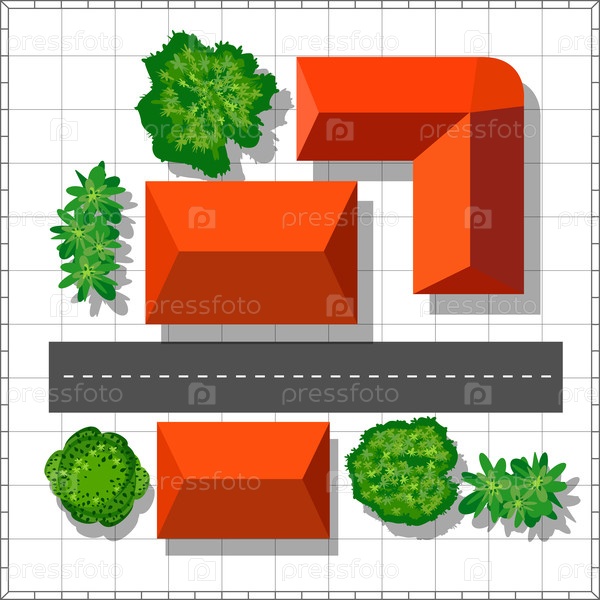 Городская улица с домами и деревьями