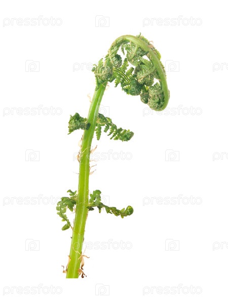 Молодой раскрывающийся папоротник изолированный на белом фоне, отрезка готова