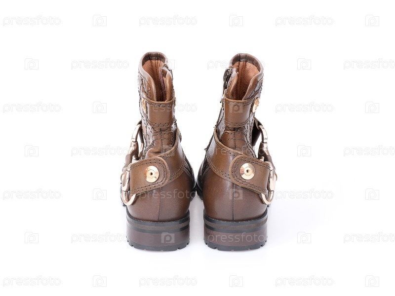 Старые коричневые кожаные сапоги изолированы на белом фоне
