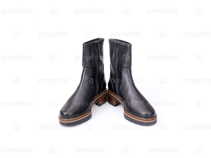 Черные кожаные сапоги изолированы на белом фоне