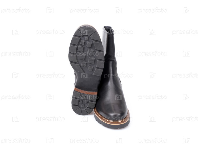 Черные кожаные сапоги изолированы на белом фоне