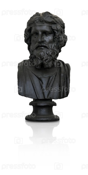 Бронзовый бюст древнего ученого (драматура) изолирован на белом фоне