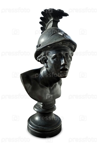 Бронзовый античный бюст героя Троянской войны Аякса, изолированный на белом фоне. Надпись на пьедестале Аякса. Элемент дизайна с подрезанной дорожкой