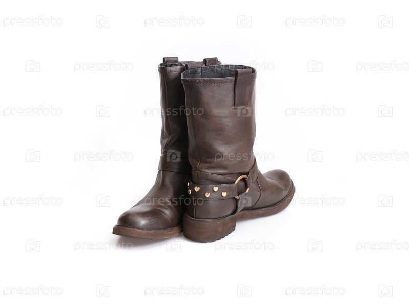Старые коричневые кожаные сапоги изолированы на белом фоне