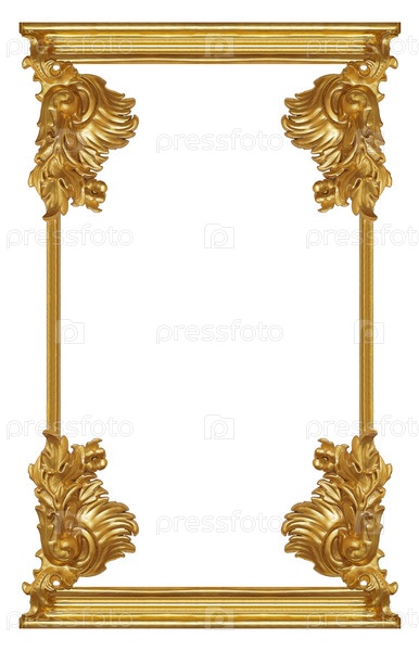 Золотая рама для картин, зеркал или фотографий, изолированных на белом фоне