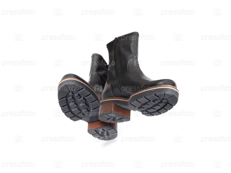 Черные кожаные сапоги изолированы на белом фоне