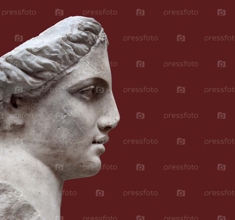 Реплика древней статуи богини Дианы изолирована на красном фоне