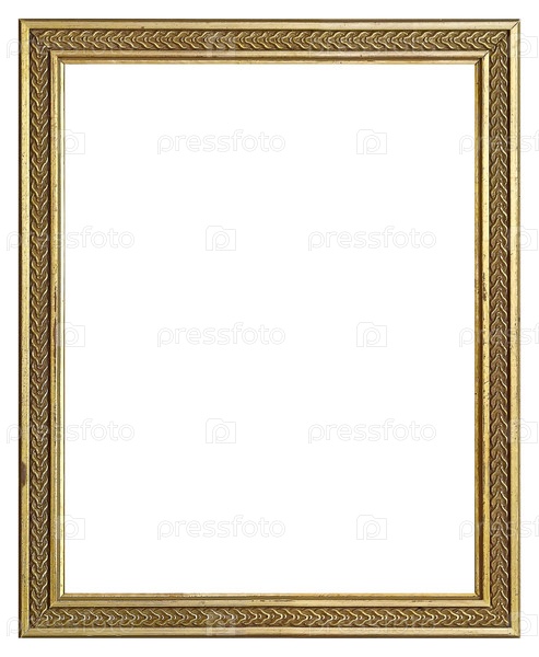 Золотая рама для картин, зеркал или фотографий, изолированных на белом фоне