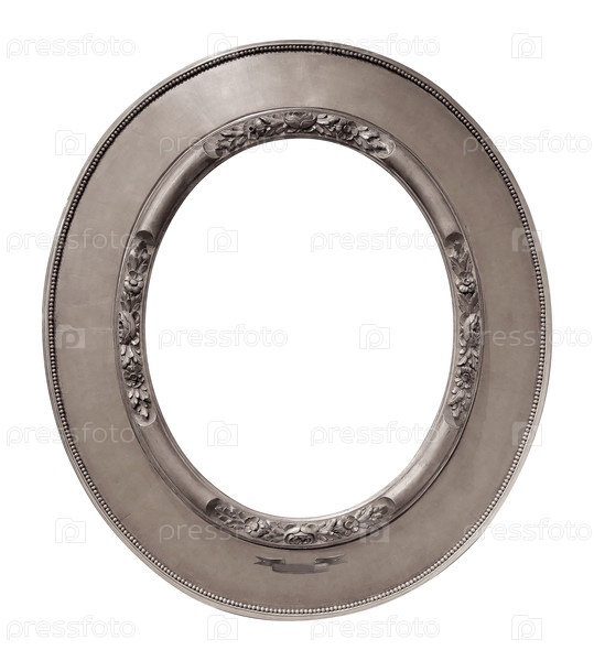 Серебряная овальная рама для картин, зеркал или фотографий, изолированных на белом фоне