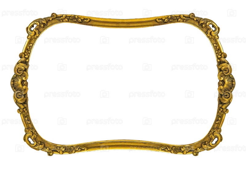 Золотая рама для картин, зеркал или фотографий, изолированных на белом фоне