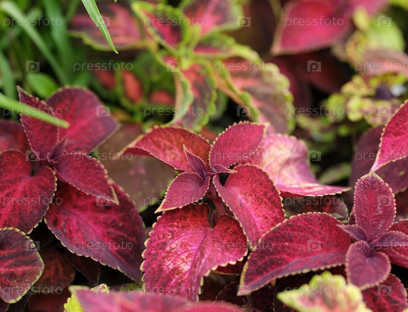 Bright Coleus: Закрытие красного, бургундского и розового листьев для обоев природы и органических структур