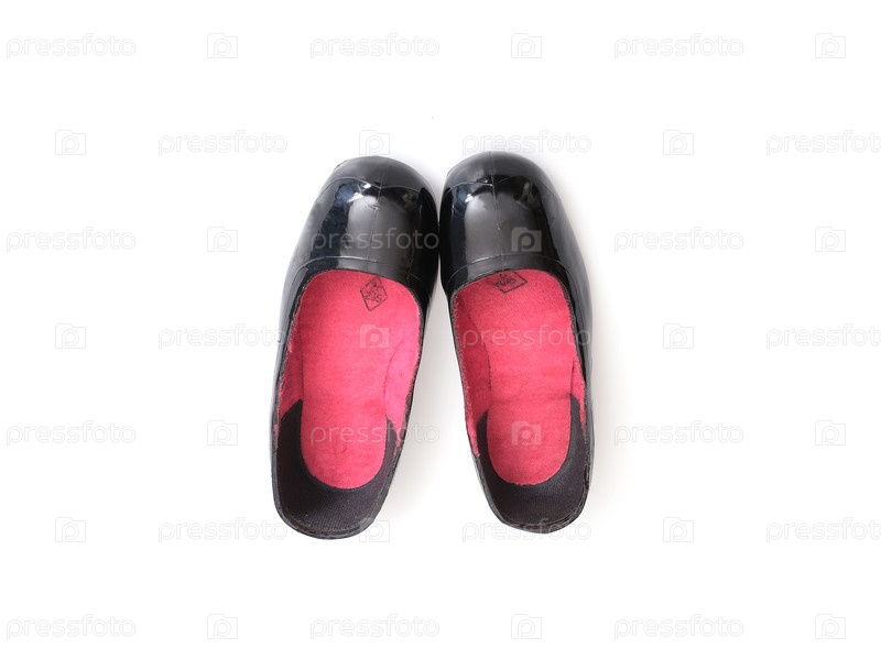 Винтажные черные резиновые галоши изолированы на белом фоне