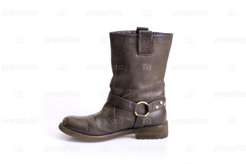 Старые коричневые кожаные сапоги изолированы на белом фоне