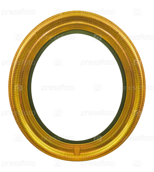 Золотая овальная рама для картин, зеркал или фотографий, изолированных на белом фоне