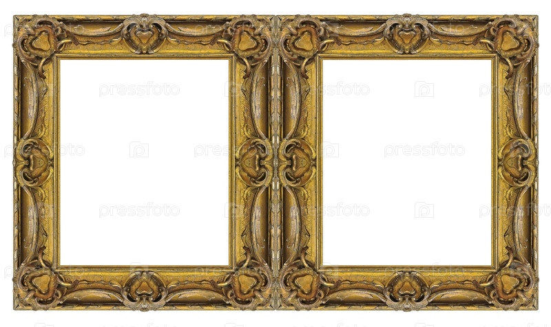 Двойная золотая рама (диптих) для картин, зеркал или фотографий, изолированных на белом фоне