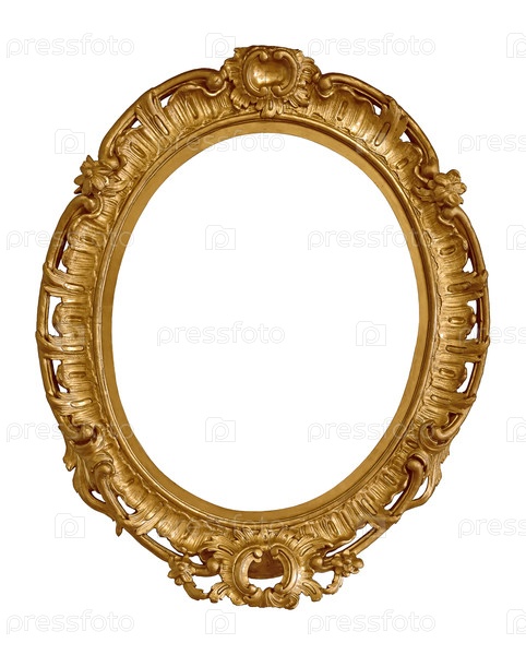 Золотая овальная рама для картин, зеркал или фотографий, изолированных на белом фоне