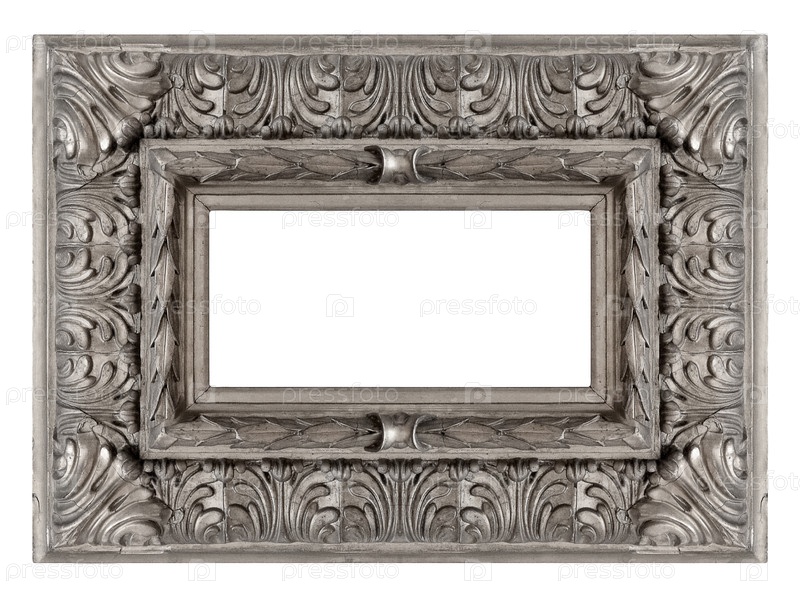 Серебряная рама для картин, зеркал или фотографий, изолированных на белом фоне