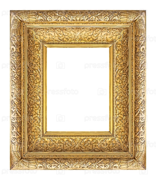 Золотая рама для картин, зеркал или фотографий, изолированных на белом фоне