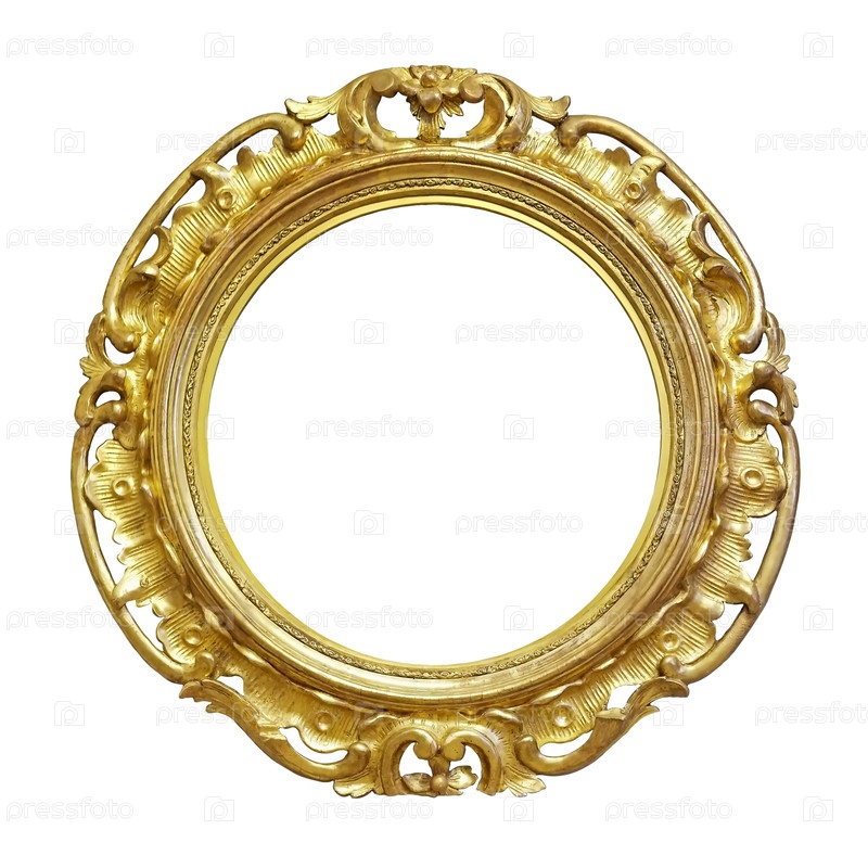 Золотая овальная рама для картин, зеркал или фотографий, изолированных на белом фоне