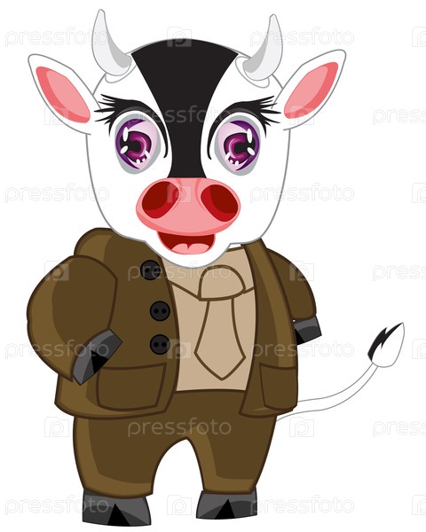 Мультфильм о корове в костюме на белом фоне изолирован