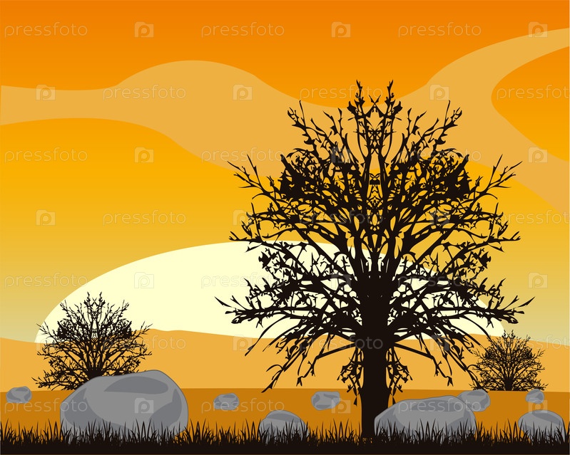 Лунный пейзаж в каменной пустыне и деревянная ночь