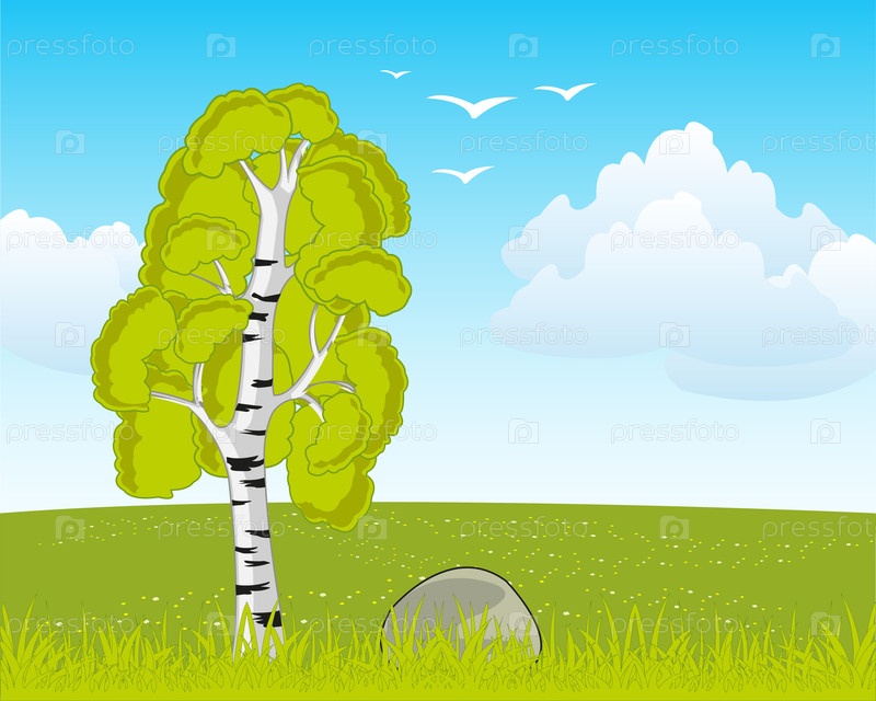 Красивый пейзаж с березовыми деревьями и днем на полу