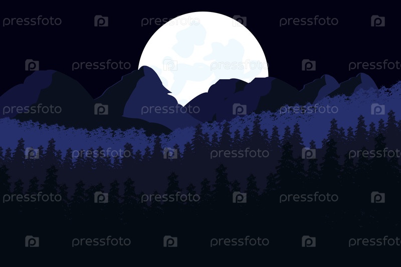 Прекрасный ночной пейзаж с лесом и горами