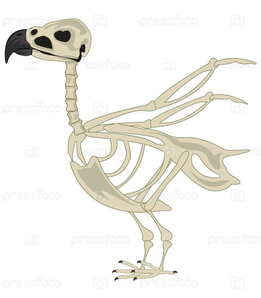 Скелет птицы на белом фоне изолирован