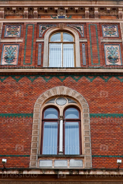 Окна в красивом старинном кирпичном здании