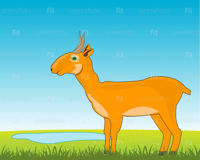 Ежегодное поле с озером и дикой природой сайги