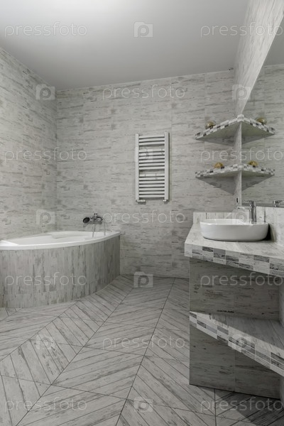 Яркая угловая ванна и вонючий запах в минималистической ванной