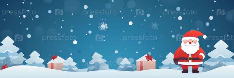 Санта-Клаус гуляет по заснеженному ландшафту, распространяя праздничные аплодисменты с снежинками и пожеланиями Счастливого Рождества