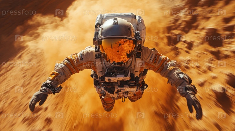 Астронавт падает в марсианскую пустыню во время пыльной бури