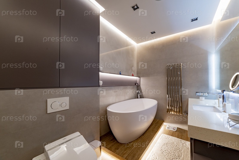 Современное многоэтажное жилое здание.Москва, ванная комната с подсветкой