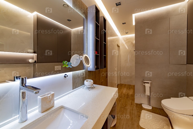 Современное многоэтажное жилое здание.Москва, ванная комната с подсветкой