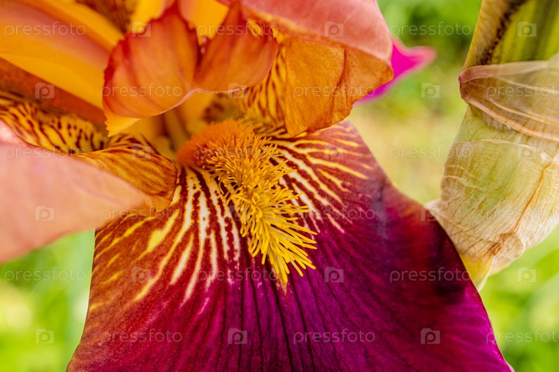 Красивый цветок радуги, расцветающий в саду. Вид спереди. коричневые, желтые, фиолетовые оттенки цветков. Абстрактный цветочный фон