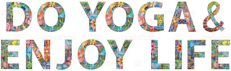 Йога и веселая жизнь векторные декоративные зубчатые объекты рукописный художественный дизайн